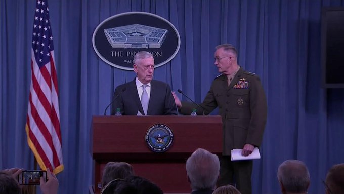 «Είναι σαφές ότι το καθεστώς του Άσαντ δεν έλαβε το μήυμα πέρυσι», δήλωσε ο Μάτις υπενθυμίζοντας το αμερικανικό πλήγμα του Απριλίου 2017 στη στρατιωτική βάση του Αλ-Σααϊράτ, κοντά στη Χομς, έπειτα από επίθεση με χημικά όπλα που είχε αποδοθεί στη Δαμασκό.